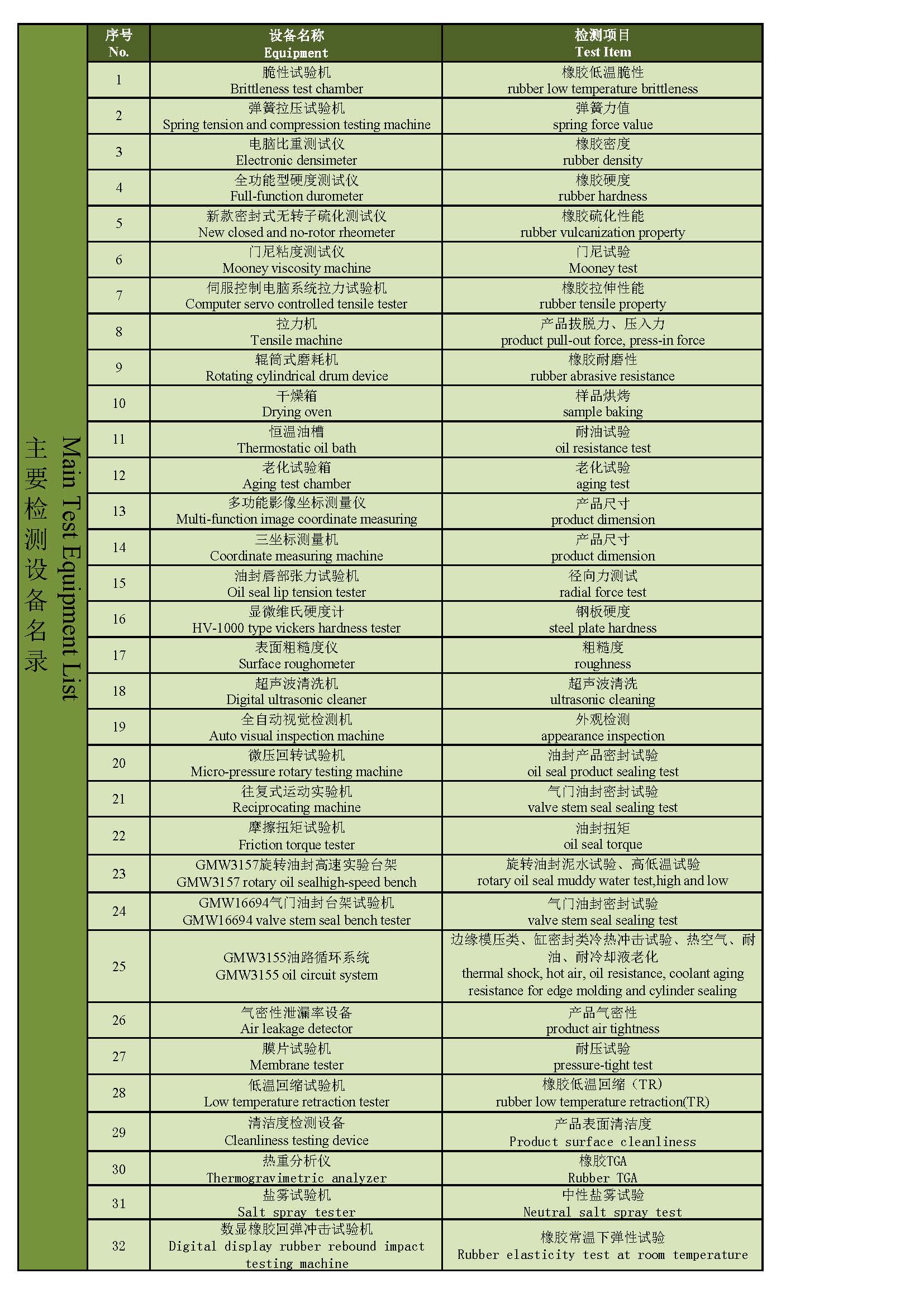 Test Equipment List